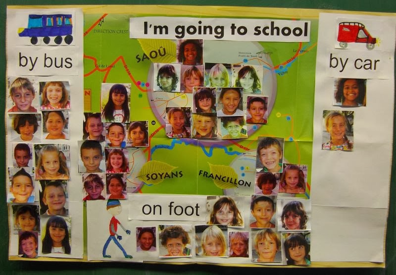 car. Nous passons à 5 arrêts, puis nous arrivons à l'école. Quand on arrive